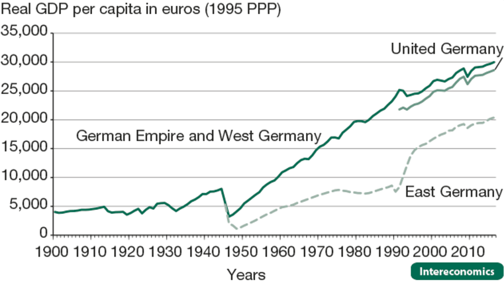 Thankfully, history can show us examples of Socialist failures. East and West Germany are a good comparison as both regimes started from a similar place following the collapse of the Third Reich. Following WW2, the West German economy experienced a sharp rise in real GDP per capita and prosperity under the Capitalist regime; in contrast to East Germany, witnessing a decline in living standards during the 1980s.